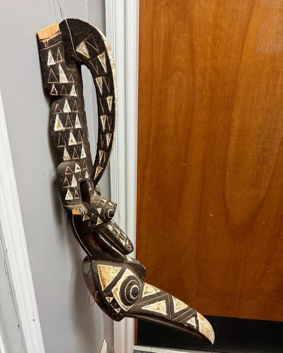 Large African Mask Crocodile With Bird, Bobo/Nuna Mask From Burkina Faso